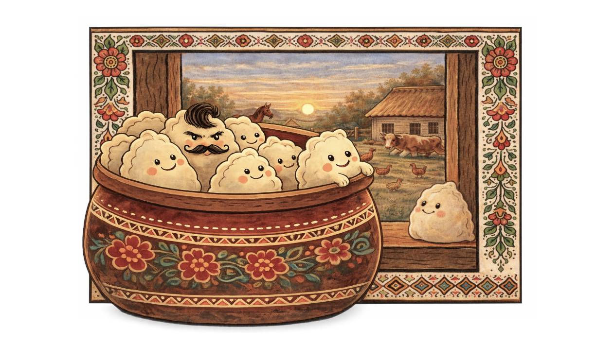 — Якось господиня вирішила разом із варениками приготувати ще й пельмені. Порадили їй там… родичі якісь. Замість нормальних вареників з м’ясом — наліпила тих пельменів. І, що найгірше, в один горщик з нами поклала. «Ну не посваряться ж», — подумала.