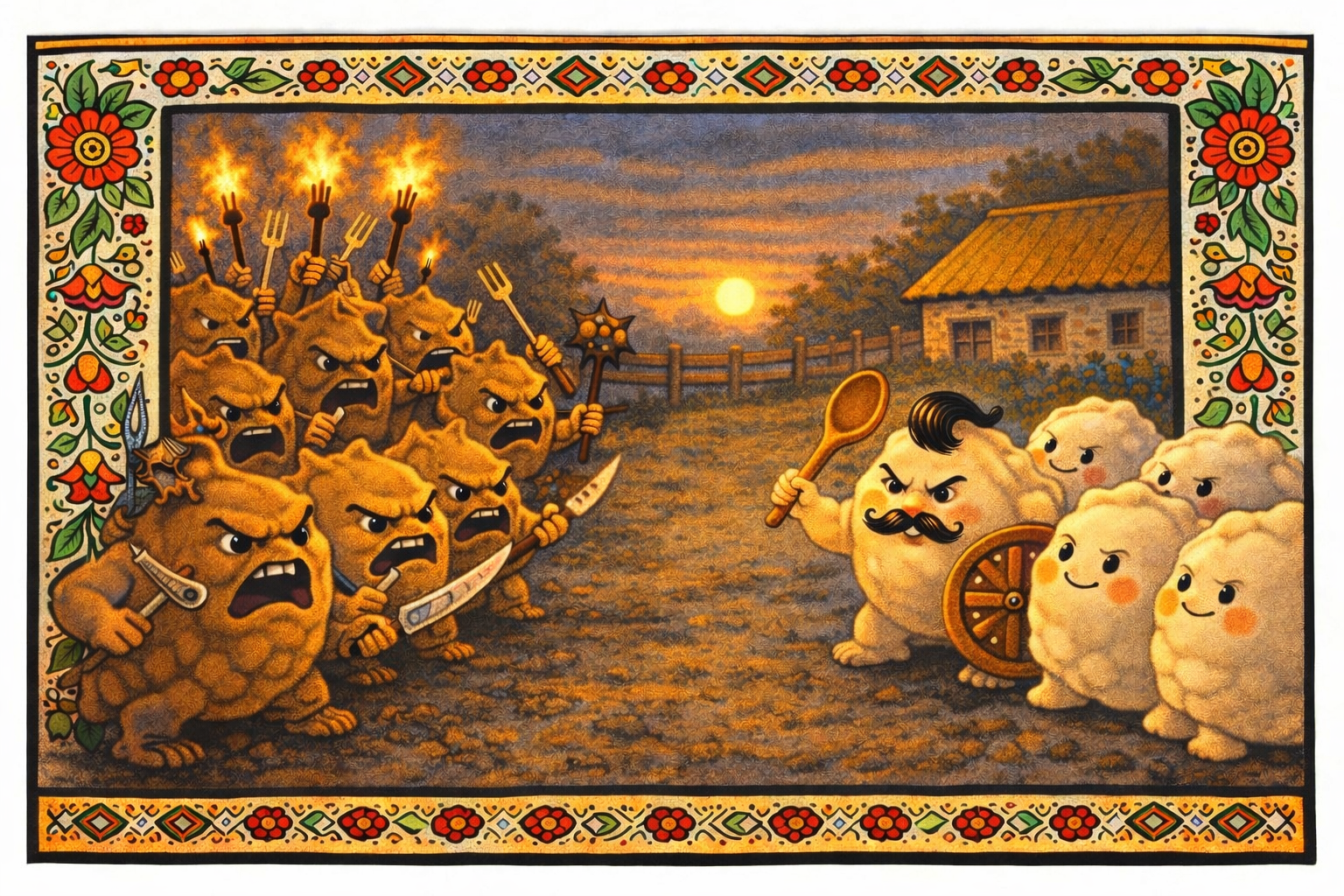 Із усіх вареників найрозумнішими вважалися вареники з картоплею. Побачивши, що справа йде до сварки, худий картопляний вареник, який стояв праворуч від капустяного, запропонував: